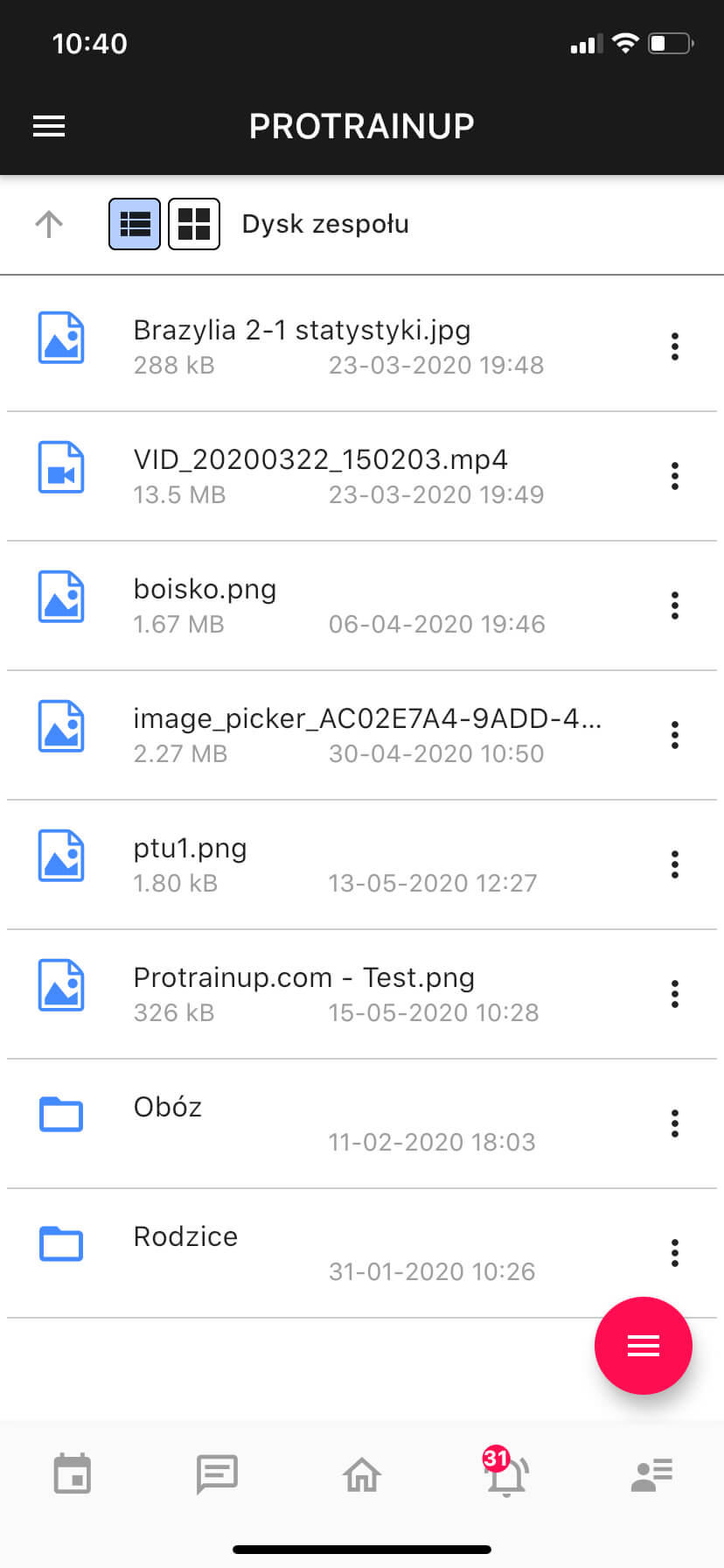 Die Inhaber der entsprechenden Lizenz erhalten Zugang zum Dokumentenverwaltungsmodul. Es besteht aus zwei Elementen. Das erste ist eine Festplatte, die nur für Mitarbeiter sichtbar ist. Das zweite sind die Dateien, auf die Spieler, Eltern und Mitarbeiter eines bestimmten Teams Zugriff haben. Auf der Ebene der Teamdateien hat das Personal die Möglichkeit, bestimmte Ordner mit ausgewählten Benutzergruppen (Spieler, Eltern) zu teilen.