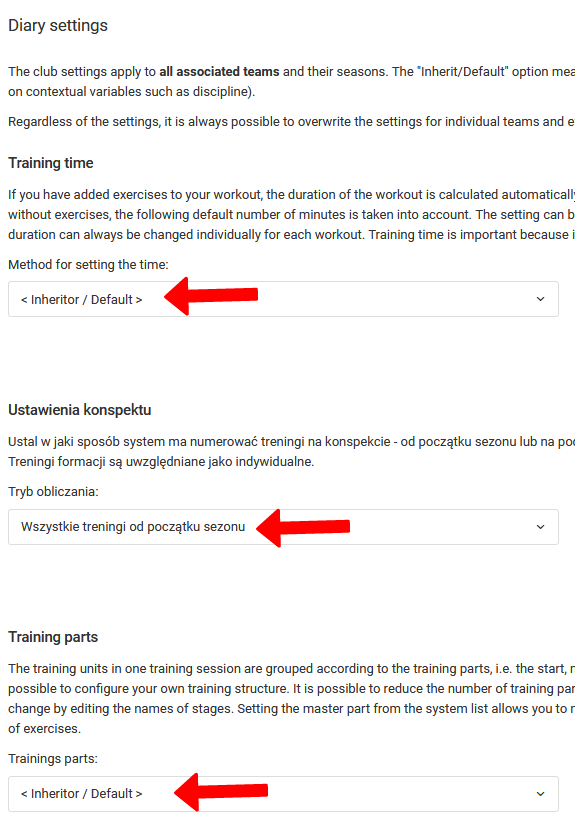 As configurações do diário têm um impacto direto em certas configurações globais, que você pode definir como configurações padrão do diário como gerente. Naturalmente, os treinadores em muitos casos têm a escolha de herdar as configurações globais de uma entidade ou definir certos itens individualmente.
